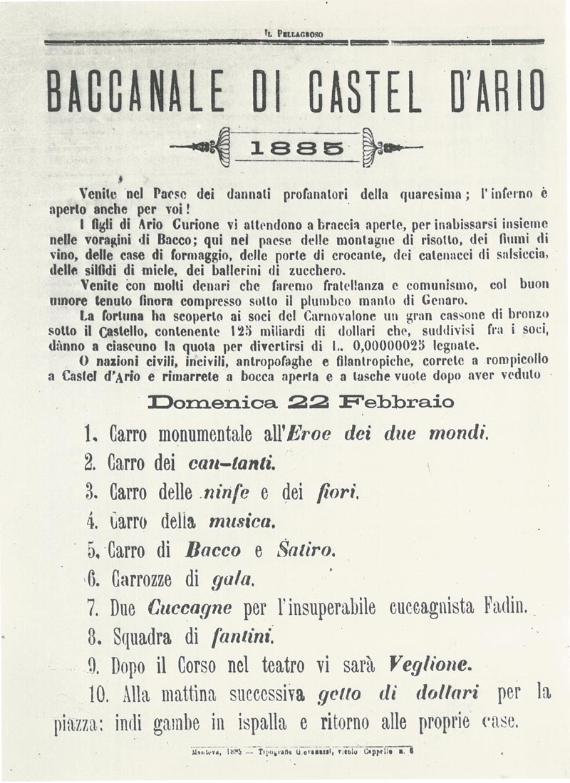 TITOLO: Il Pellagroso CRONOLOGIA: 22 Febbraio 1885 TITOLO: Baccanale di Castel D’Ario COLLOCAZIONE: Provincia di Mantova