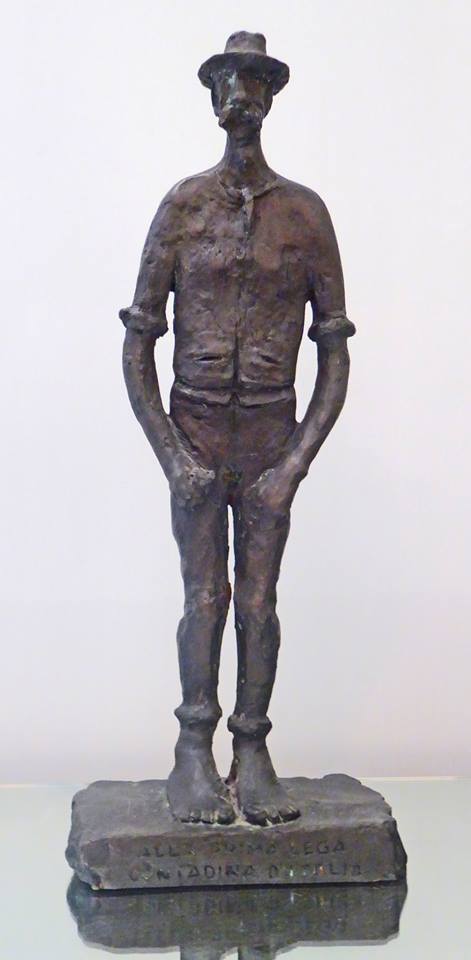 piatta segnata da poche linee incise sul petto a raffigurare la camicia, le braccia
