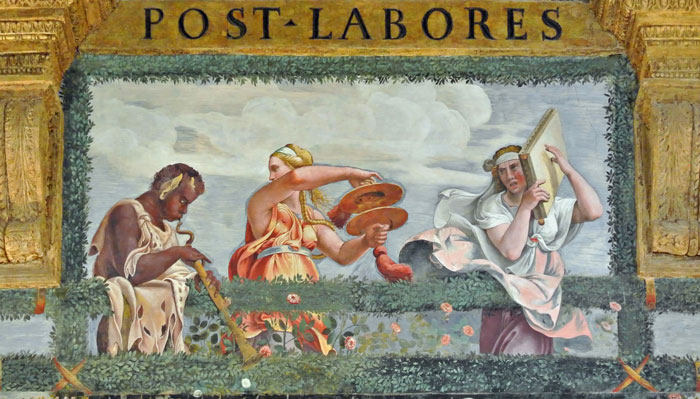 AUTORE: Giulio Romano e scuola TITOLO: Banchetto di Amore e PsicheCRONOLOGIA: 1526-1528TECNICA: affresco, rifiniture a seccoCOLLOCAZIONE: Camera di Amore e Psiche – Parete ovestDESCRIZIONE: dettaglio musici