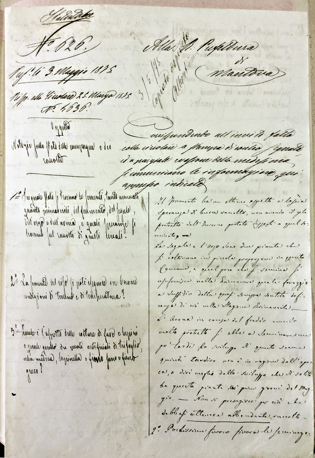 Documento originale del deputato politico che denunciava, al comando austriaco, l'avvio delle proteste che porteranno alla nascita della Bigolada.