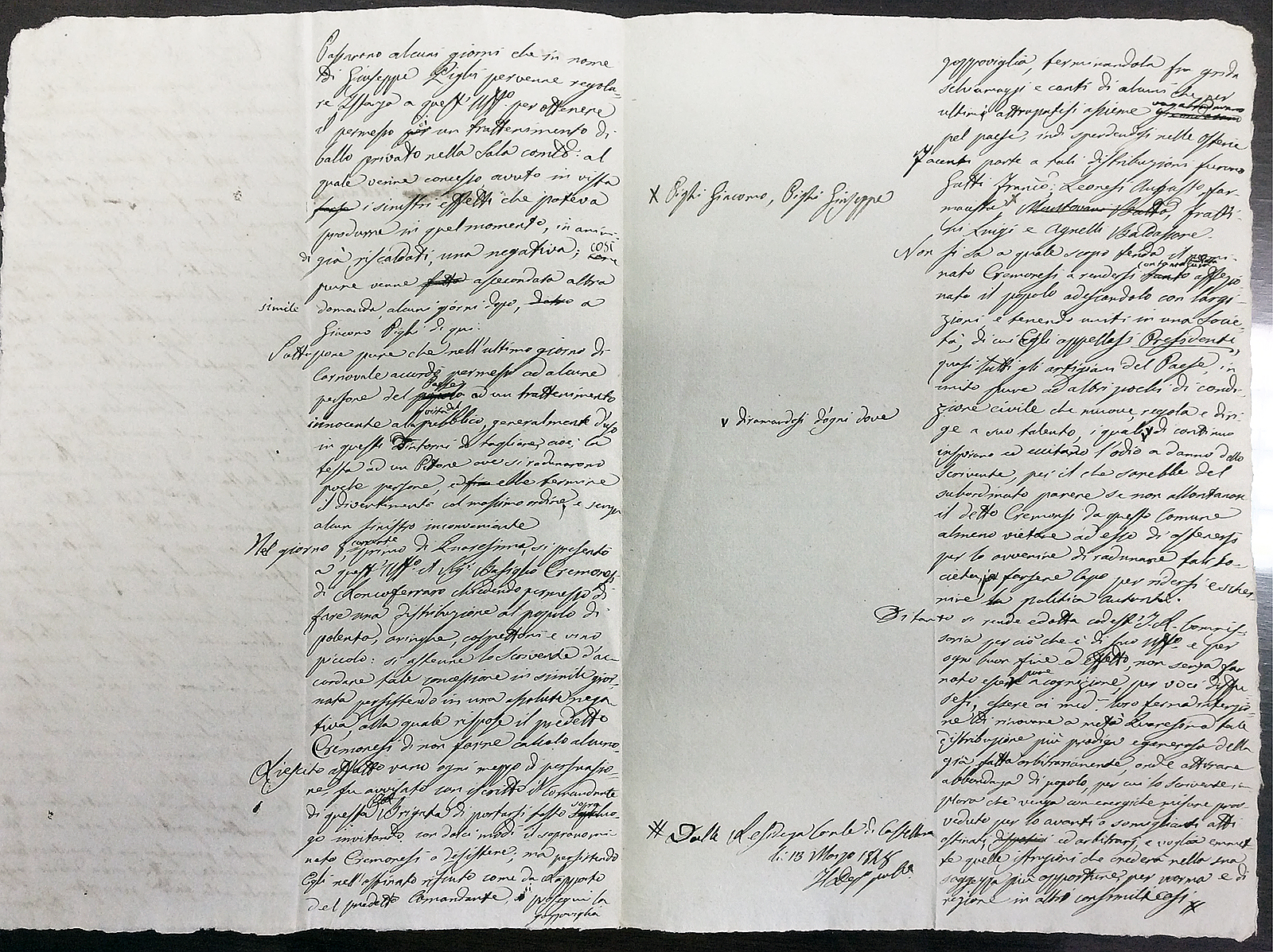 Documento originale del deputato politico che denunciava, al comando austriaco, l'avvio delle proteste che porteranno alla nascita della Bigolada.