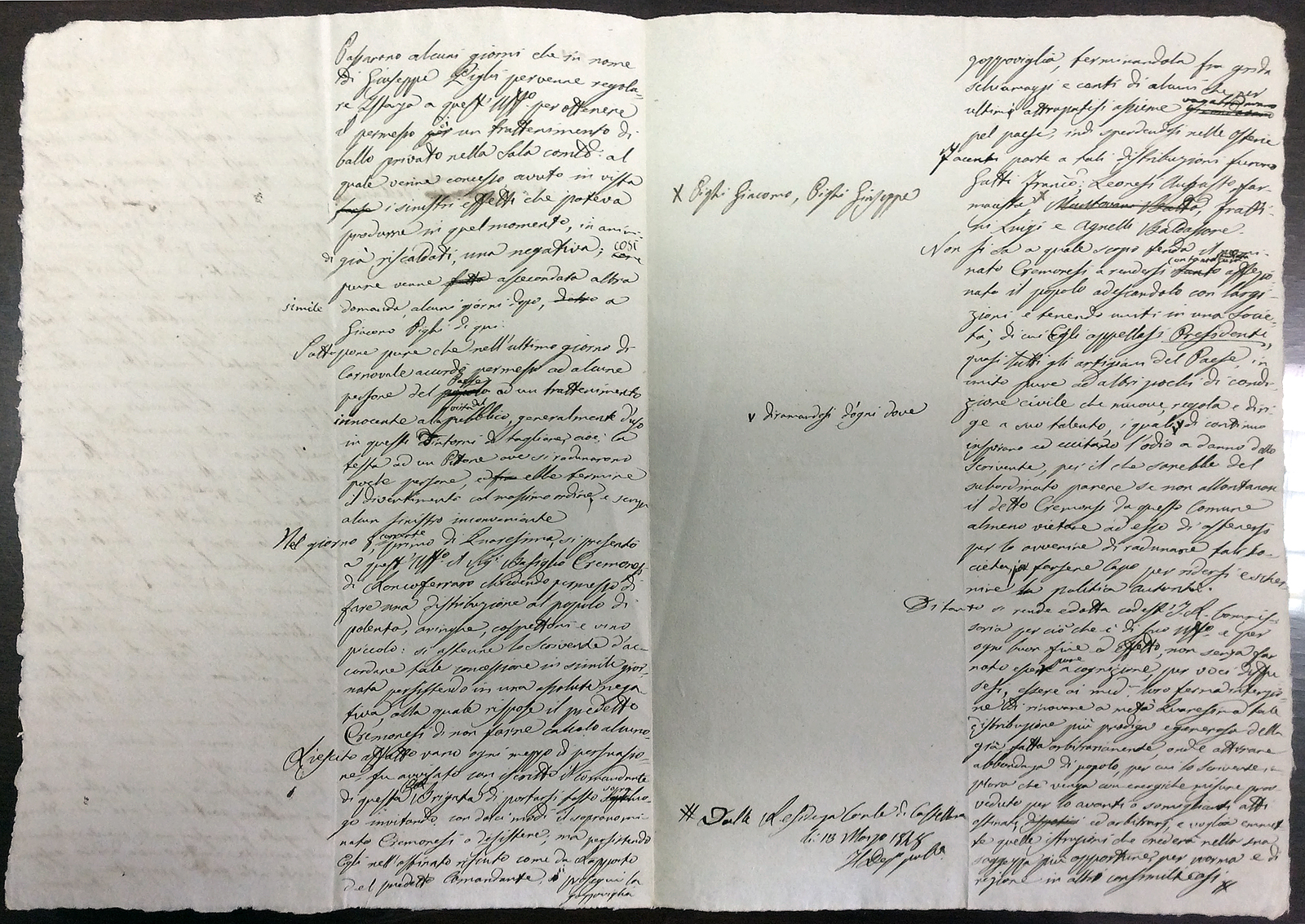 Documento originale del deputato politico che denunciava, al comando austriaco, l'avvio delle proteste che porteranno alla nascita della Bigolada.